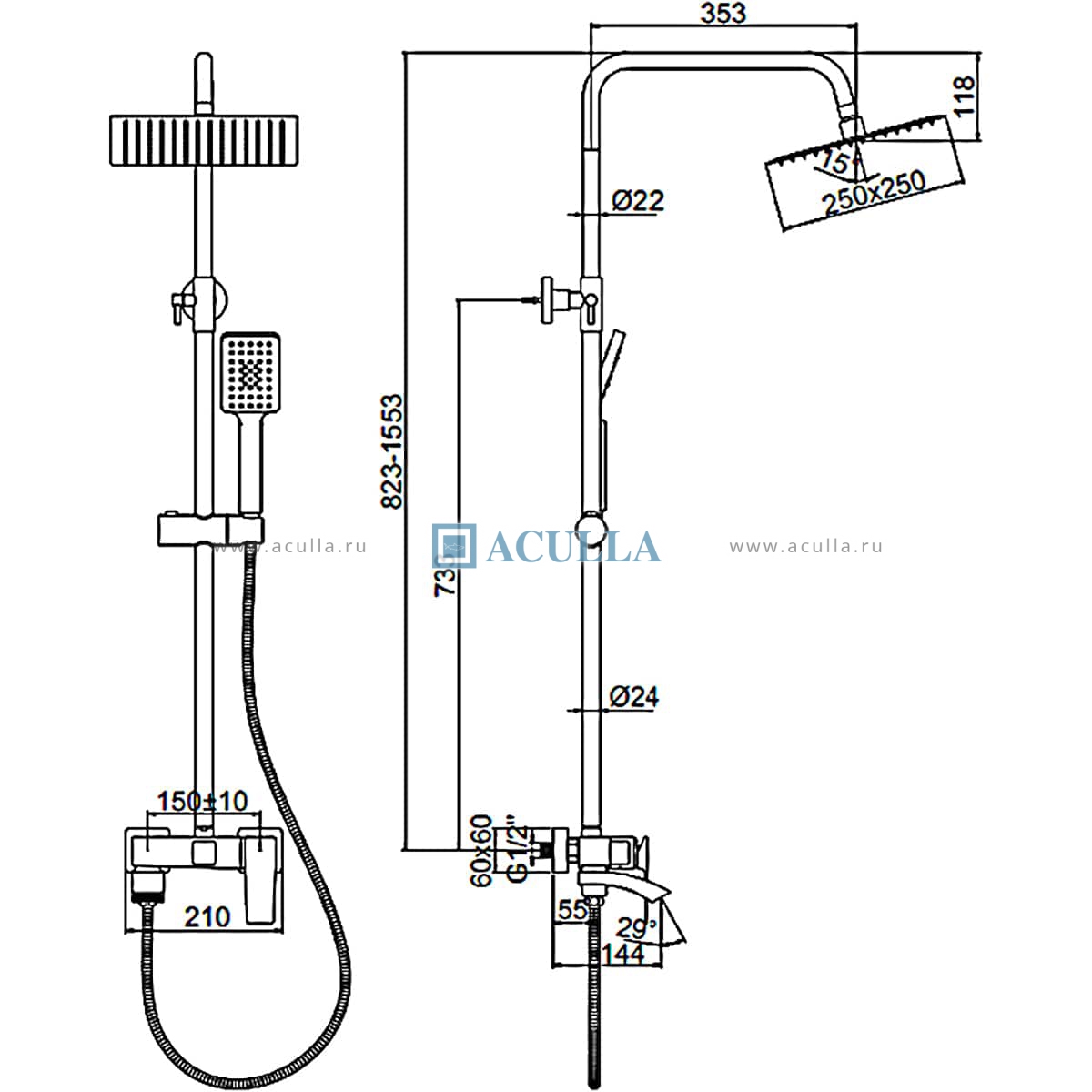 • Современный душевой гарнитур со смесителем и изливом для ванны