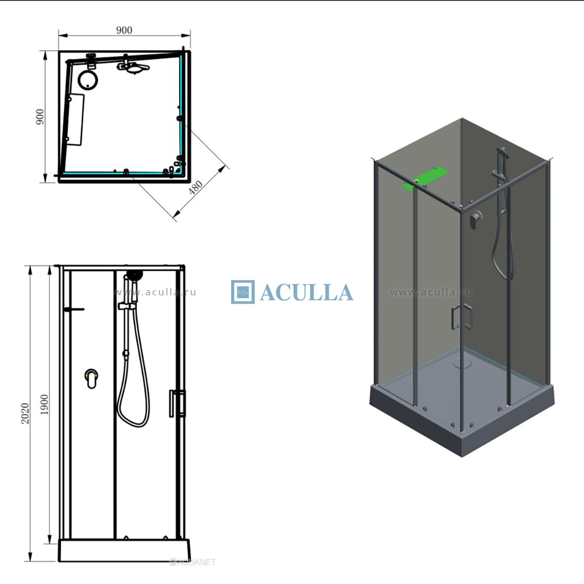 • Открытая душевая кабина без крыши от российсого производителя Aquanet