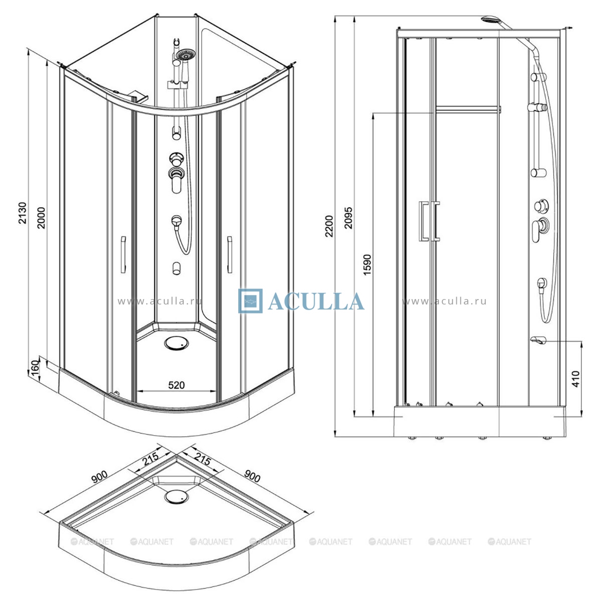 • Регулируемый душевой гарнитур — вместо дугообразного верхнего душа • Излив — вместо гидромассажных форсунок • Цвет профиля: хром • Возможен лево- или правосторонний монтаж двери • Безсиликоновая сборка • Фиксация кабины к стене • Материал профиля: алюминий • Стекло: 5 мм, прозрачное • Профиль для компенсации зазора между кабиной и стеной • Комбинированный Верхний / Ручной душ XL • Наличие излива • Размеры кабины: 900х900х2200 мм • Форма: четверть круга. Душевая кабина Aquanet Passion R 3.0 348329 90х90 смКод товара: 1072000215