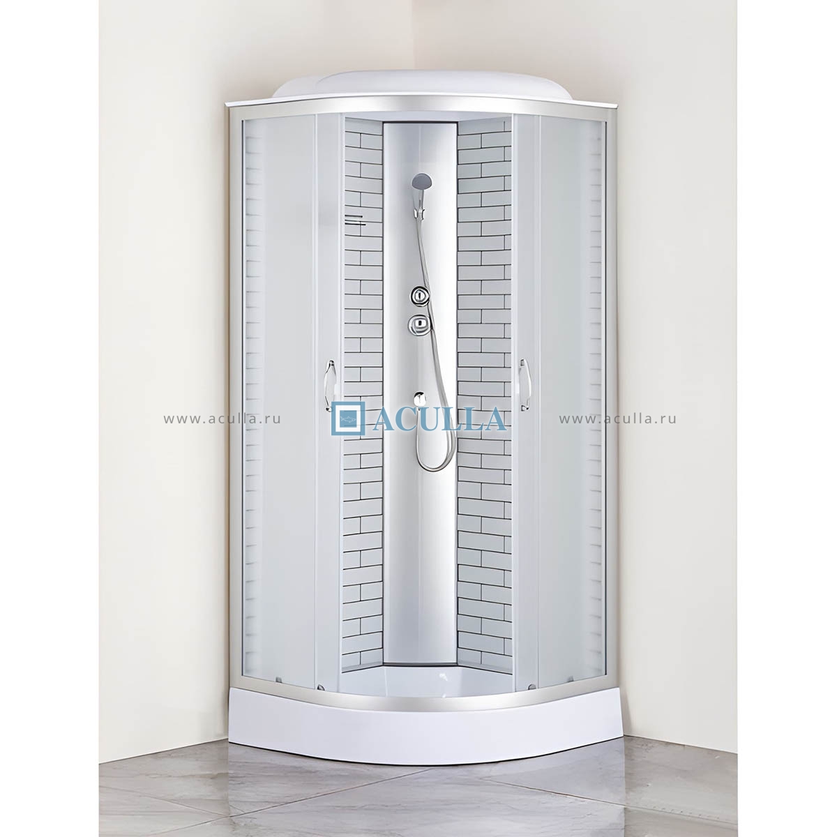 • Белая угловая душевая кабина с размерами: 80х80х215 см