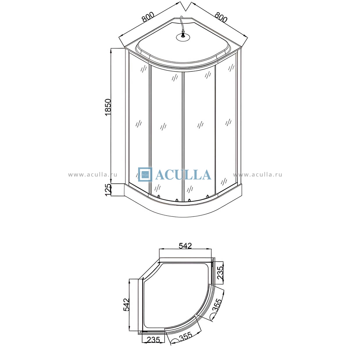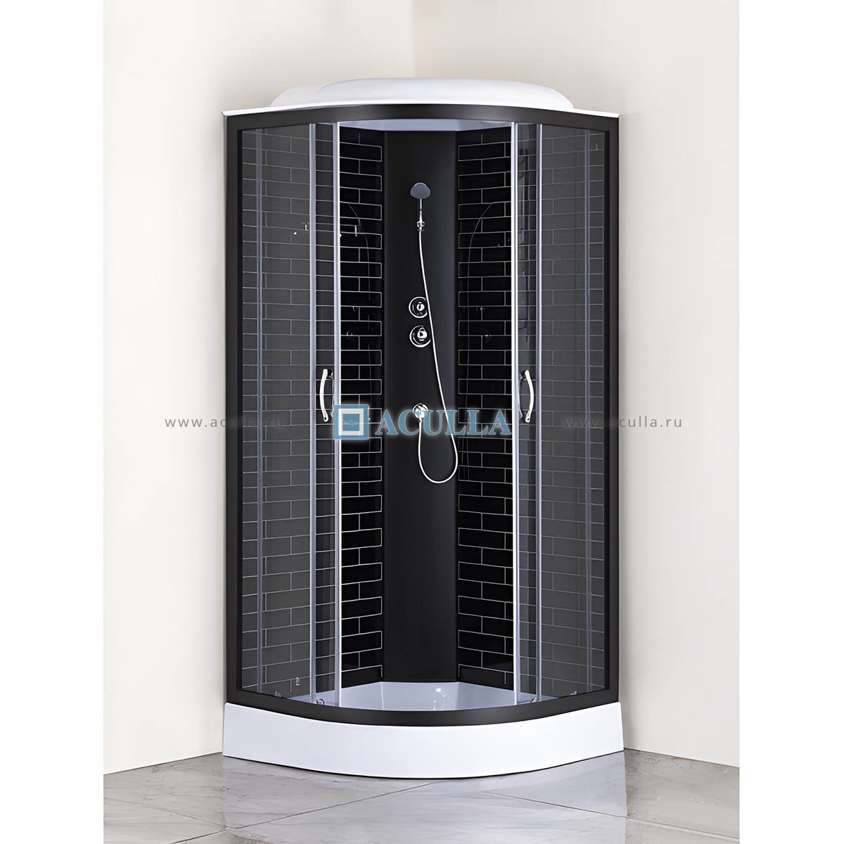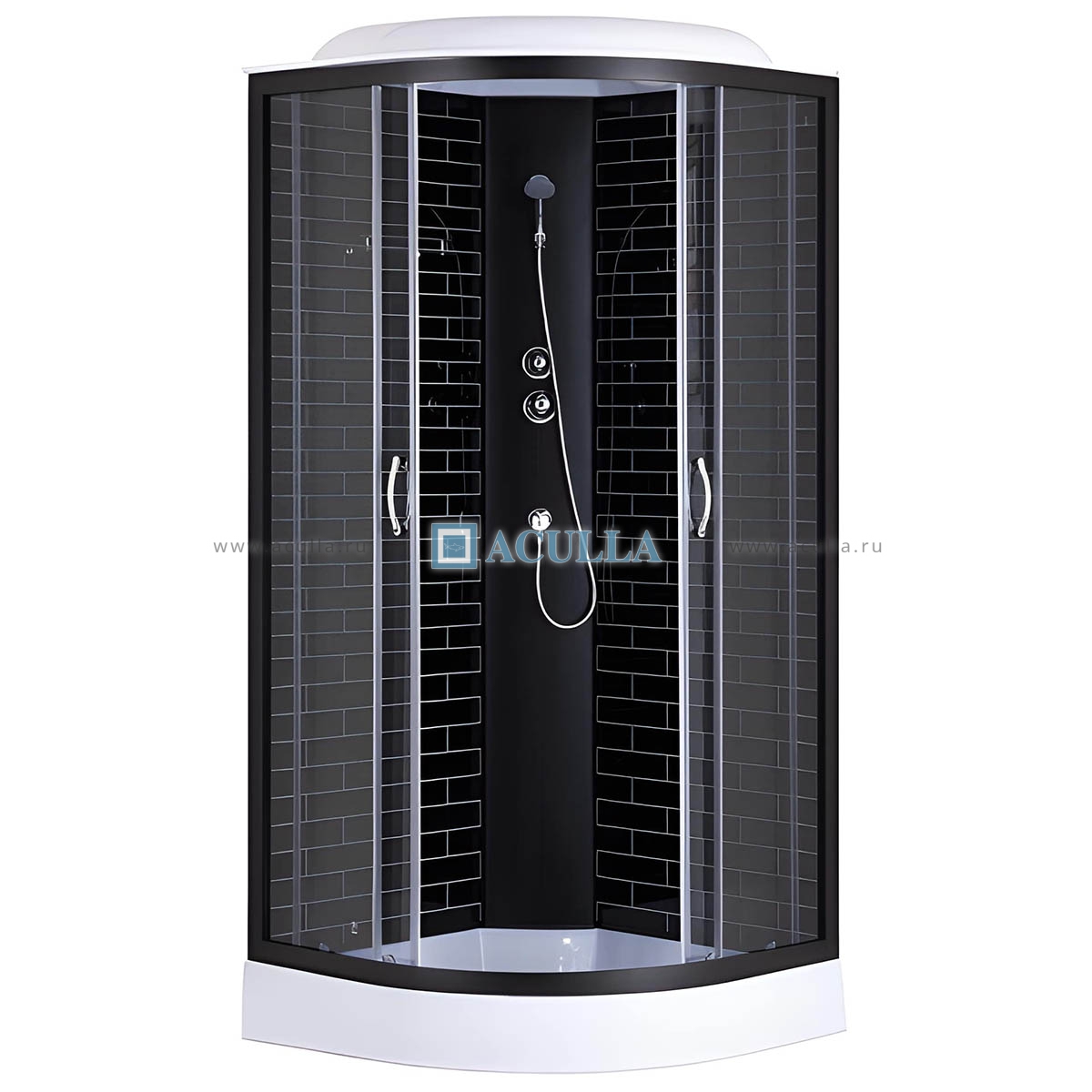 • Чёрно-белая угловая душевая кабина с размерами: 80х80х215 см