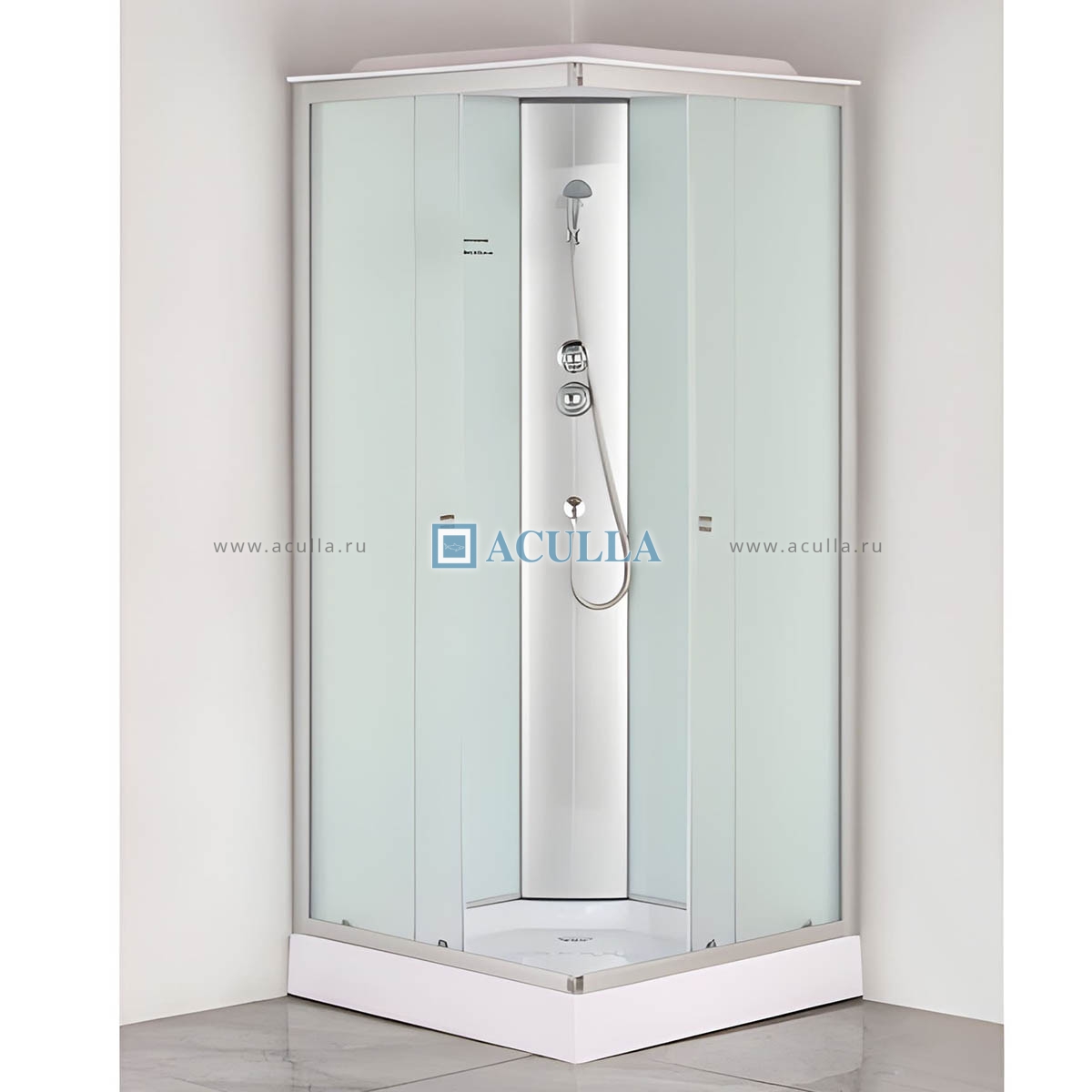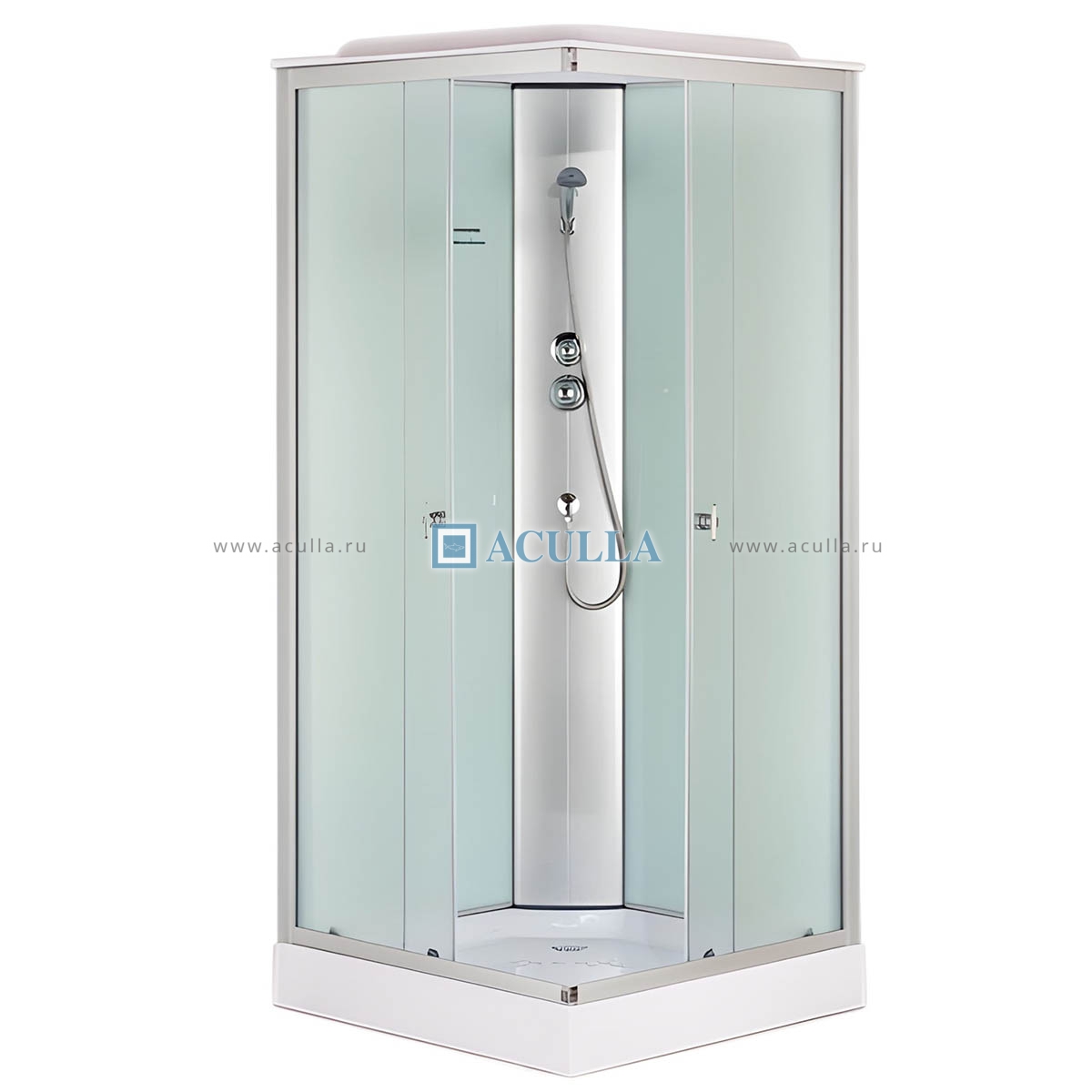 • Белая угловая душевая кабина с размерами: 100х100х215 см