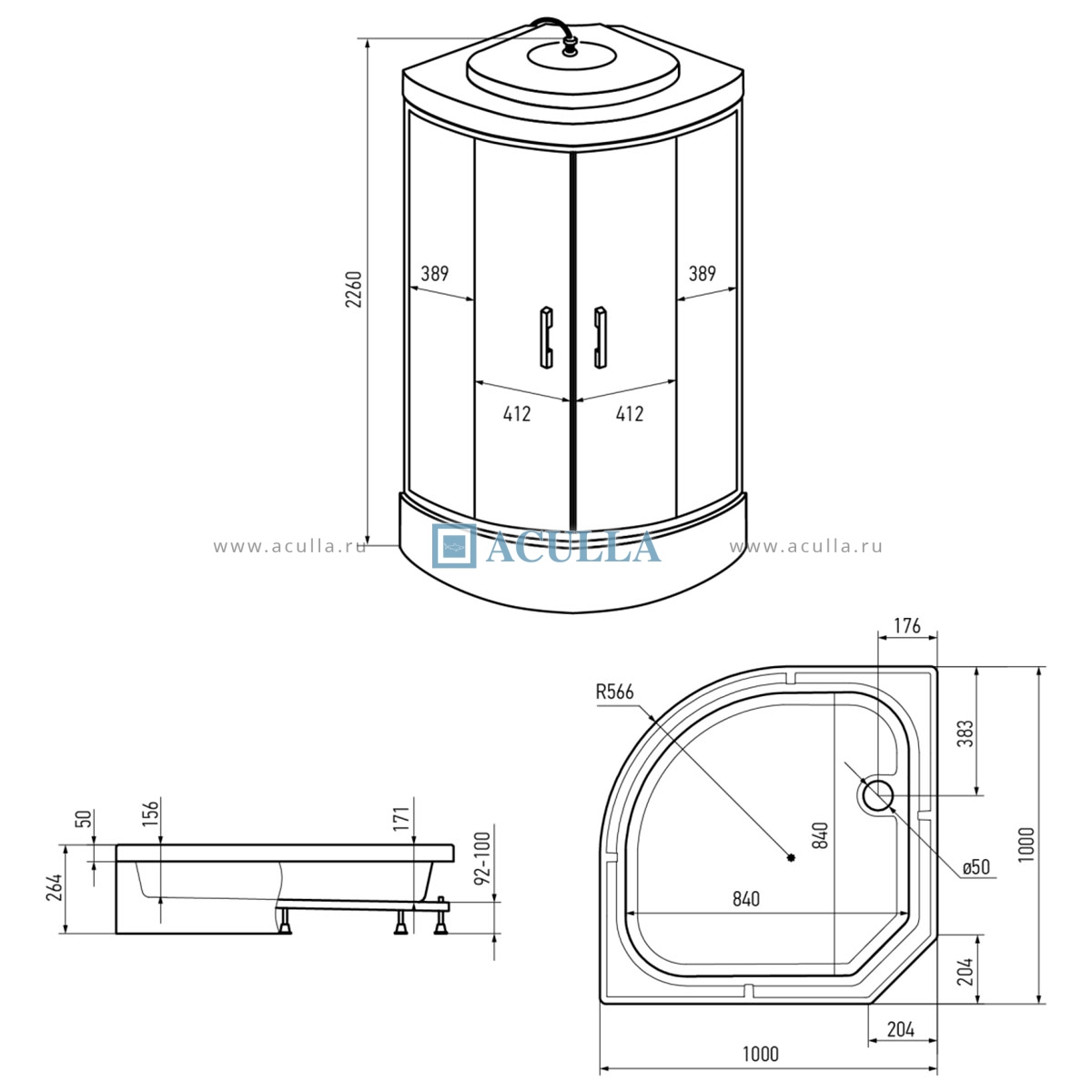 • Форма кабины: четверть круга