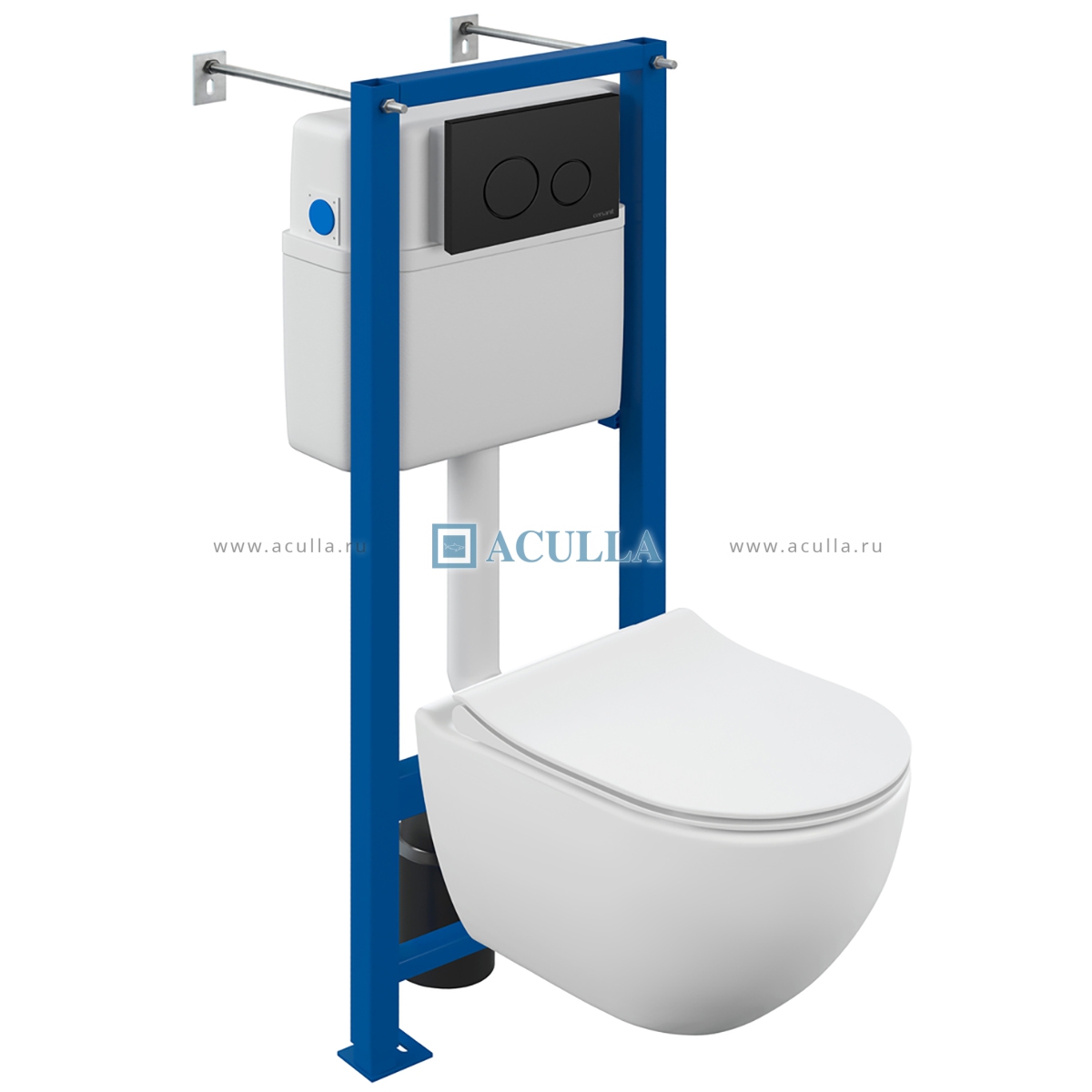 • Инсталляция Cersanit Vector в комплекте с подвесным унитазом Cersanit Brasko Smart и клавишей смыва Cersanit Twins чёрного цвета