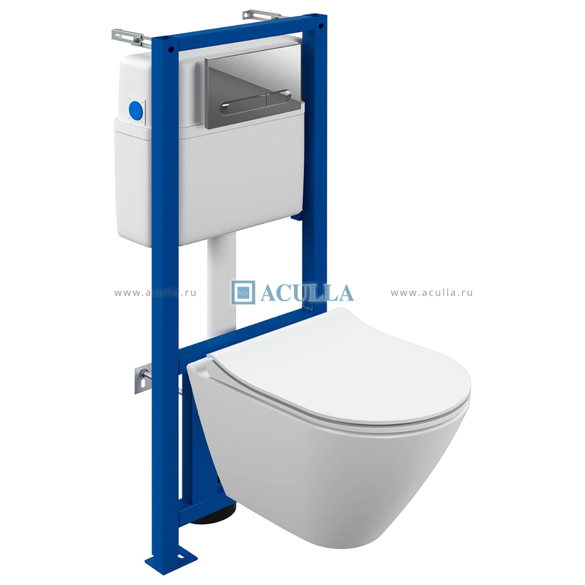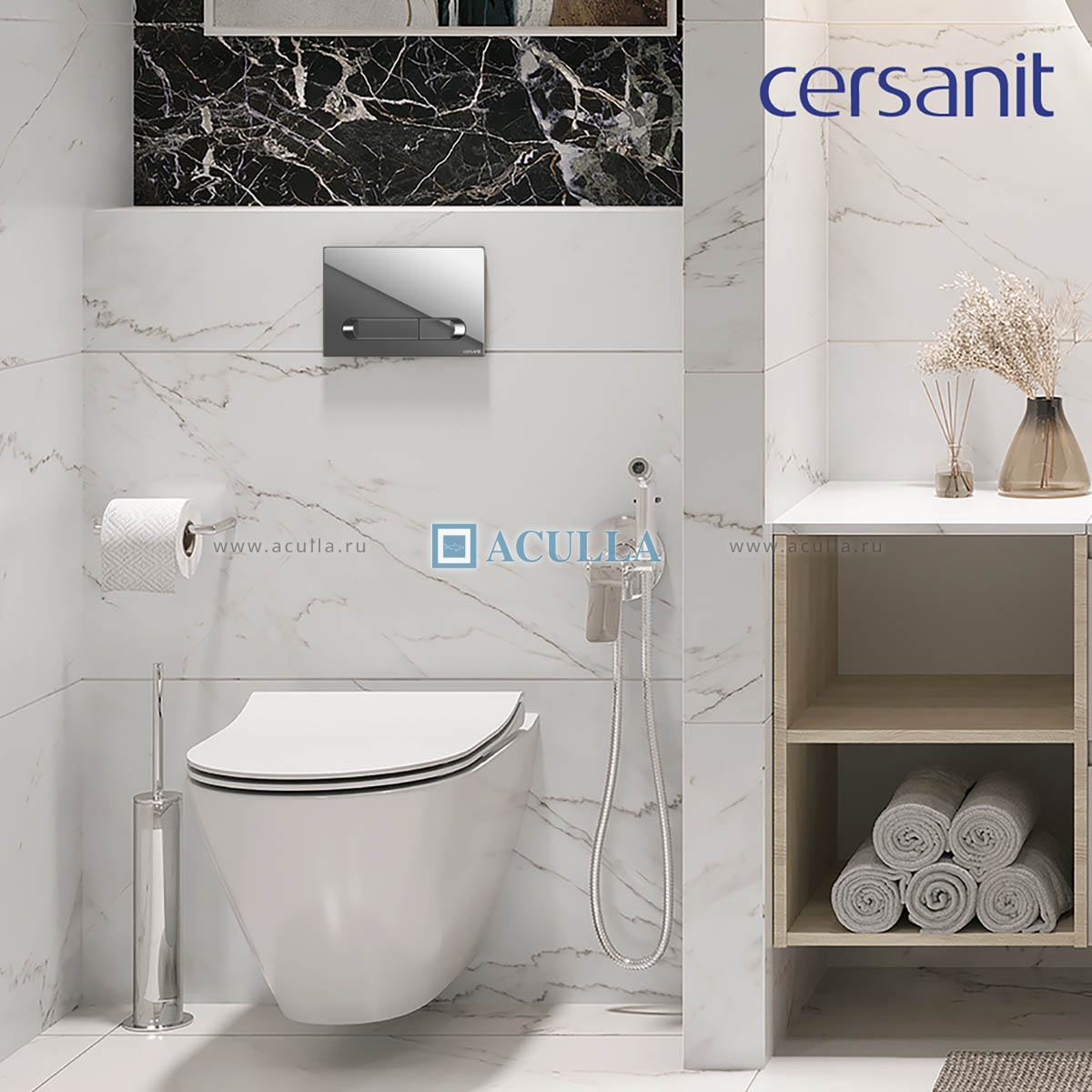 • Инсталляция Cersanit Link Pro в комплекте с подвесным унитазом Cersanit Brasko Smart и клавишей смыва Cersanit Estetica хромированного цвета