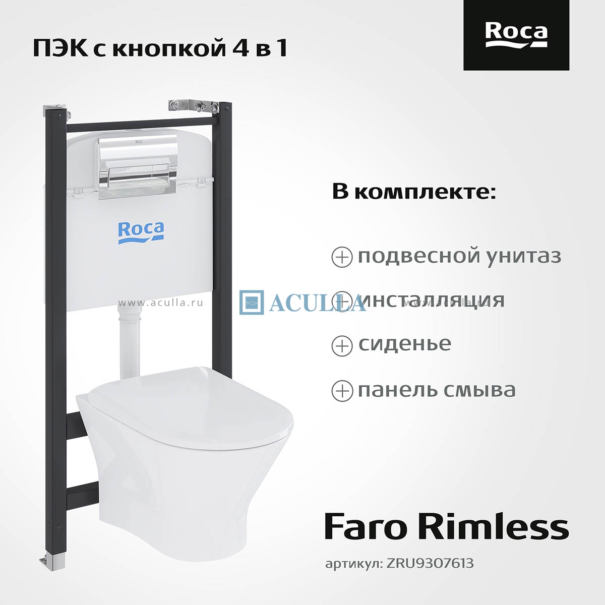 • Готовый комплект инсталляции Roca Faro ZRU9307613 — стильное и надёжное решение для современного санузла