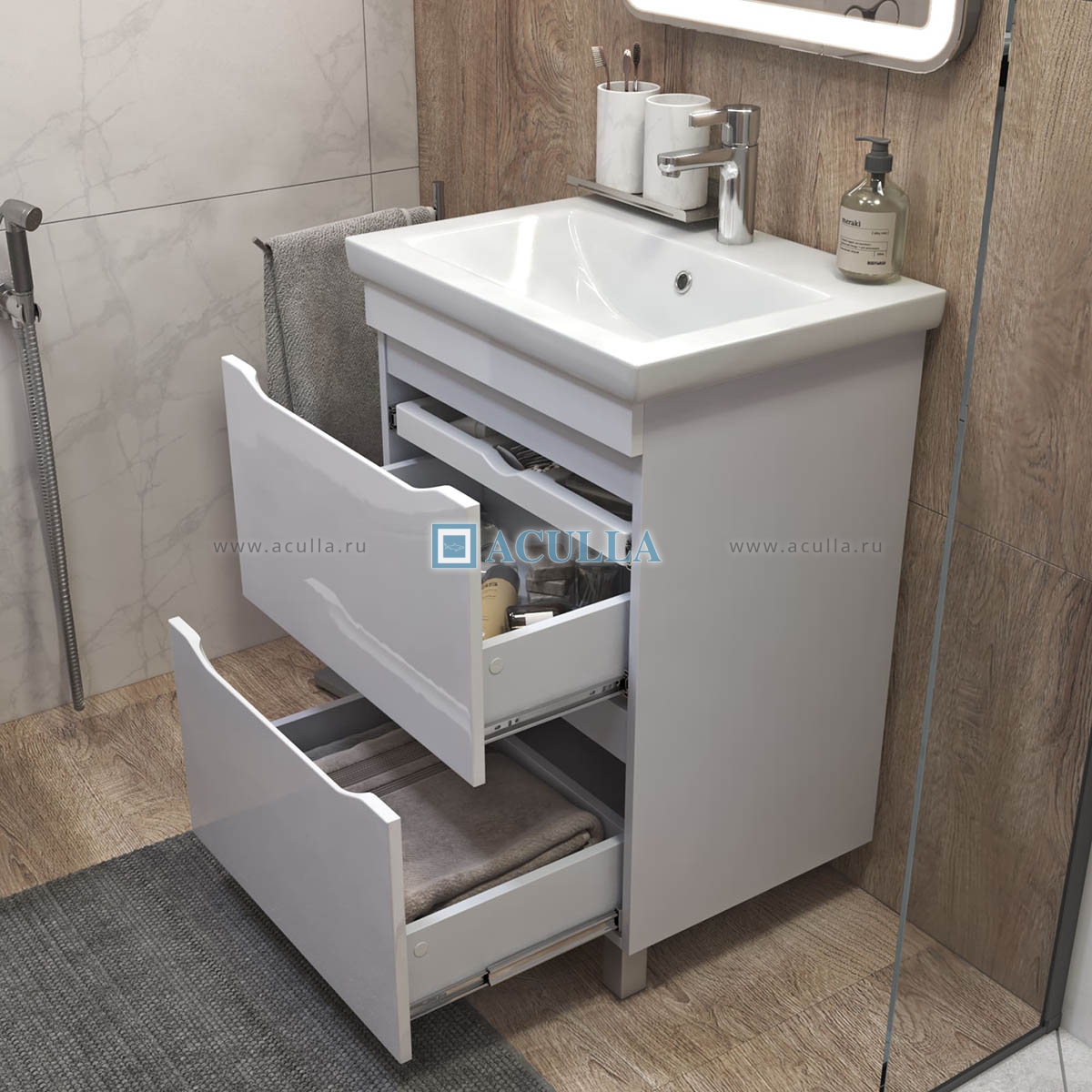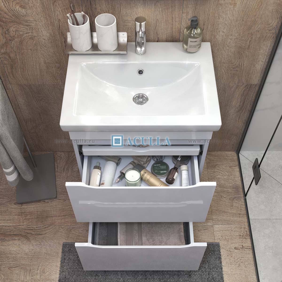 • Тумбы из коллекции Vigo Grani оснащены удобным органайзером, который позволяет легко находить и доставать необходимые вещи
