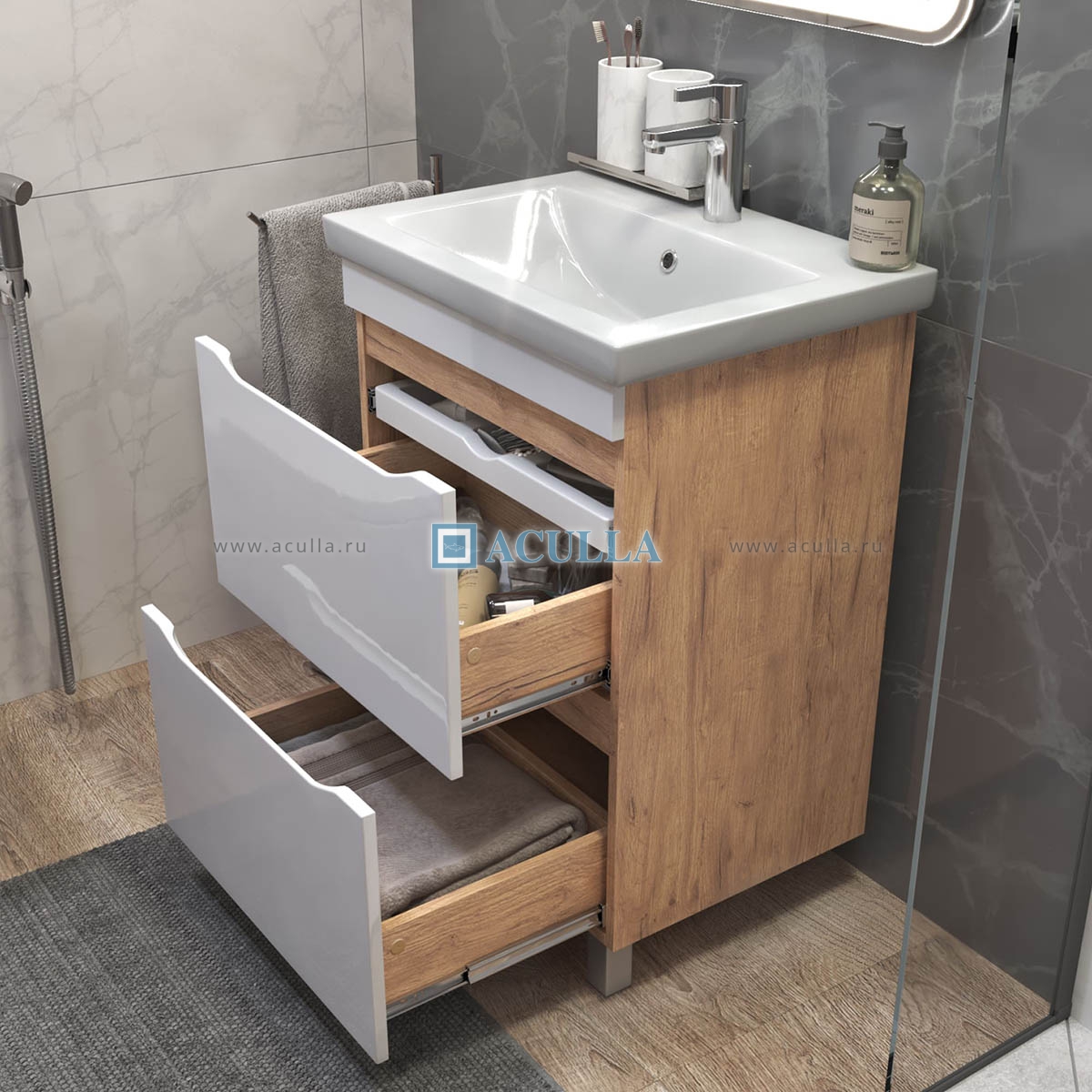 • Мебель оснащена шариковыми направляющими полного выдвижения, что обеспечивает плавный и бесшумный ход ящика • Еще более комфортное использование мебели делают интегрированные ручки • Размеры: 60х45х83 см • Цвет тумбы: белый/дуб золотой • Комплектуется умывальником Cersanit Como 60 см • Тумба поставляется в собранном виде • Гарантия производителя: 2 года. Тумба с умывальником Vigo Grani 600-0-2 60 см напольная дуб золотойКод товара: 1093000902