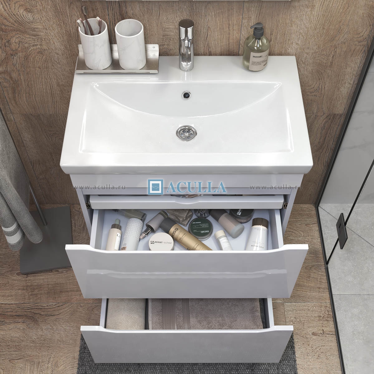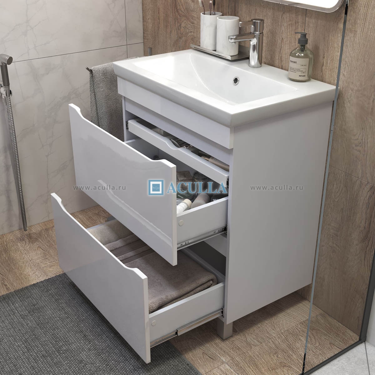 • Тумбы из коллекции Vigo Grani оснащены удобным органайзером, который позволяет легко находить и доставать необходимые вещи