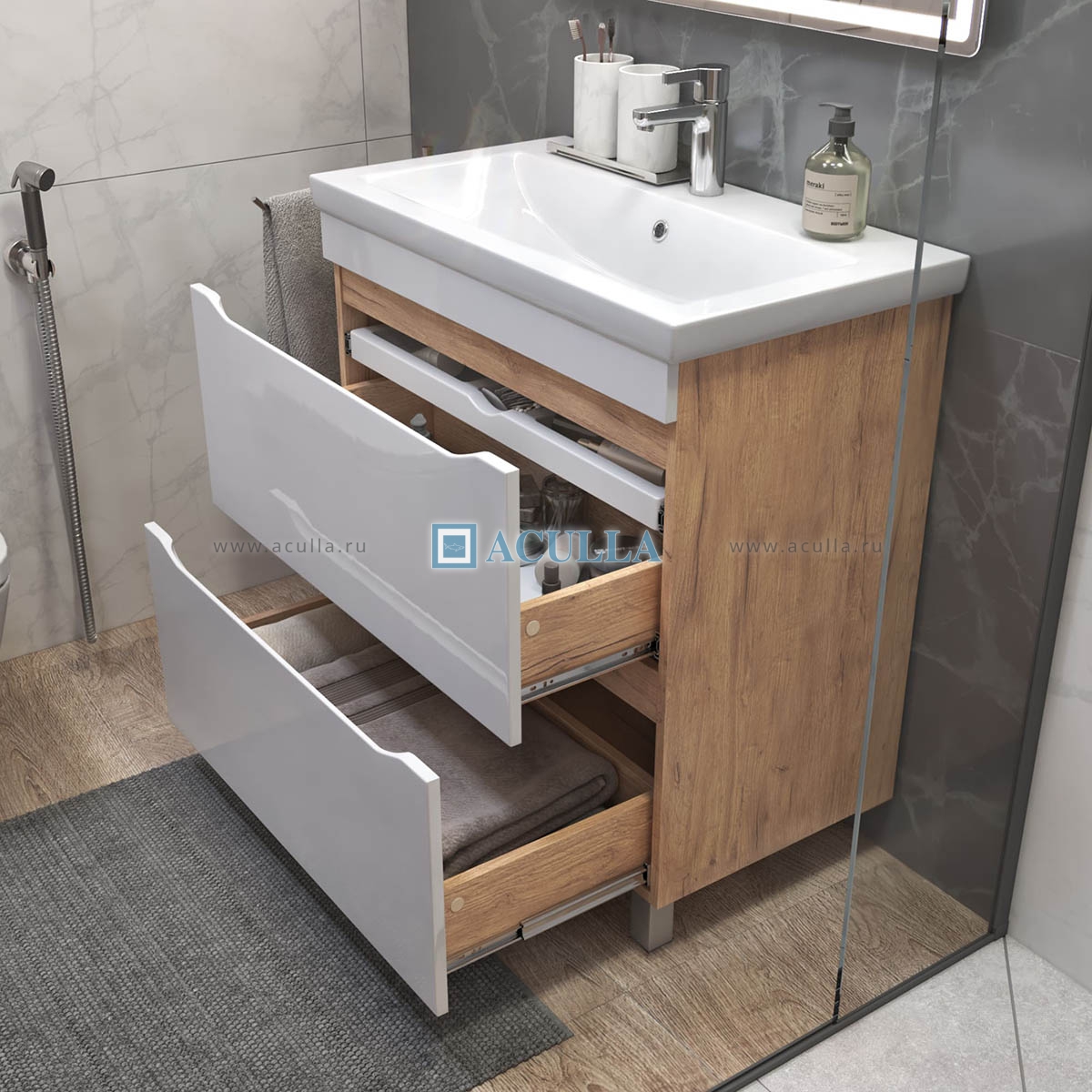 • Мебель оснащена шариковыми направляющими полного выдвижения, что обеспечивает плавный и бесшумный ход ящика • Еще более комфортное использование мебели делают интегрированные ручки • Размеры: 80х45х83 см • Цвет тумбы: белый/дуб золотой • Комплектуется умывальником Cersanit Como 80 см • Тумба поставляется в собранном виде • Гарантия производителя: 2 года. Тумба с умывальником Vigo Grani 800-0-2 80 см напольная дуб золотойКод товара: 1093000906