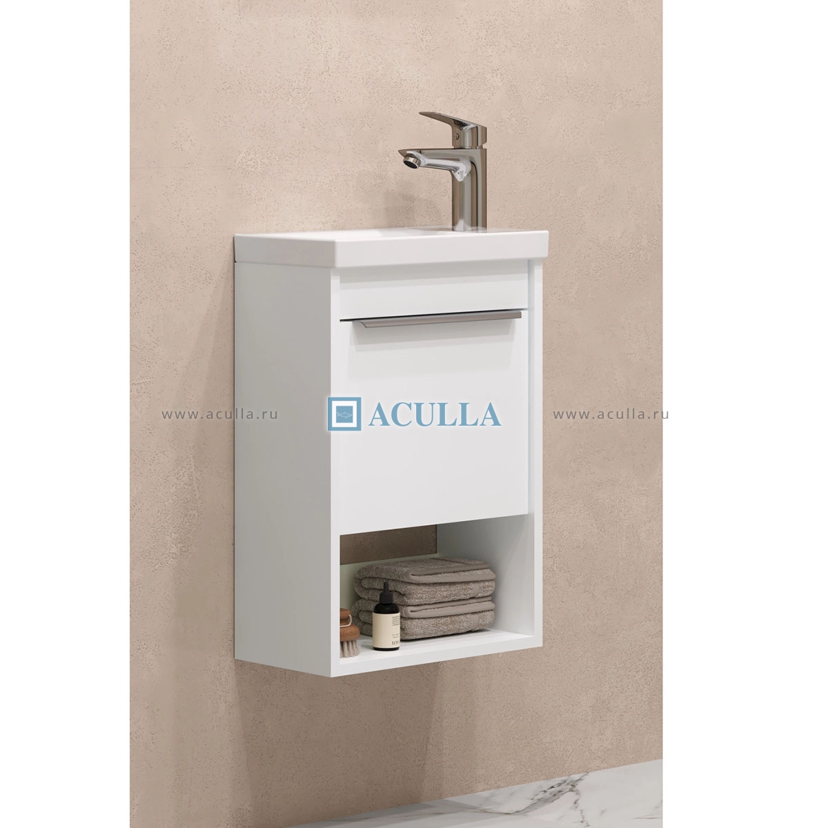 • Каждая тумба в этой коллекции создана с вниманием к деталям и стремлением к гармонии, что делает их не только практичными, но и эстетически привлекательными • Элегантные линии и современный дизайн подчеркивают утонченность интерьера, а использование влагостойкой ЛДСП гарантирует долговечность и простоту в уходе • Удобная ручка добавляет нотку изысканности, а открытая ниша предоставляет возможность организовать пространство так, как вам удобно — будь то размещение любимых аксессуаров или необходимых принадлежностей • Корпус и фасад выполнены из влагостокой ЛДСП в белой матовой покраске полиэфирной краской ультрафиолетового отверждения • Ручка в данной коллекции в трендовом цвете gun metal (вороненый металл) • Изготовленная из алюминия, она не только привлекает внимание своим эстетичным дизайном, но и имеет надежный и удобный хват • Тумбы коллекции Хоуп за счет своих цветовых решений в белом, древесном и светло-зеленом исполнении идеально впишутся в любой стиль ванной комнаты, от минимализма до классики, создавая атмосферу уюта и комфорта • Они не только помогут поддерживать порядок, но и станут ярким акцентом вашего интерьера • Регулируемые петли с доводчиком позволят использовать весь функционал тумбы бесшумно и с комфортом, а открытая ниша дает возможность убирать туда необходимы принадлежности, чтобы они всегда были под рукой • Высота полезного пространства - 160 мм • Цвет тумбы: белый • Тумба комплектуется умывальником Santek Миранда 40 см. Тумба с умывальником Акватон Хоуп 40 1A2871K0HP2B0 40 смКод товара: 1094001004