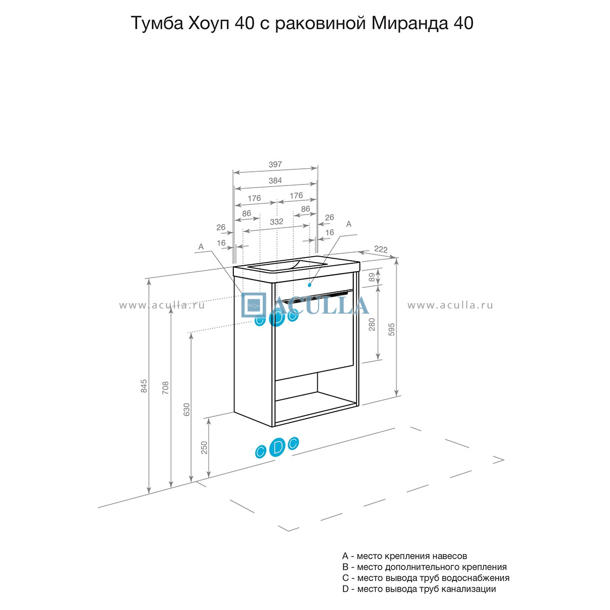 Тумба с умывальником Акватон Хоуп 40 1A2871K0HP6C0 40 см