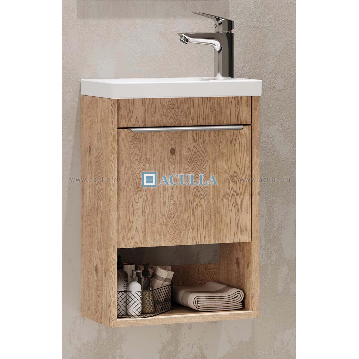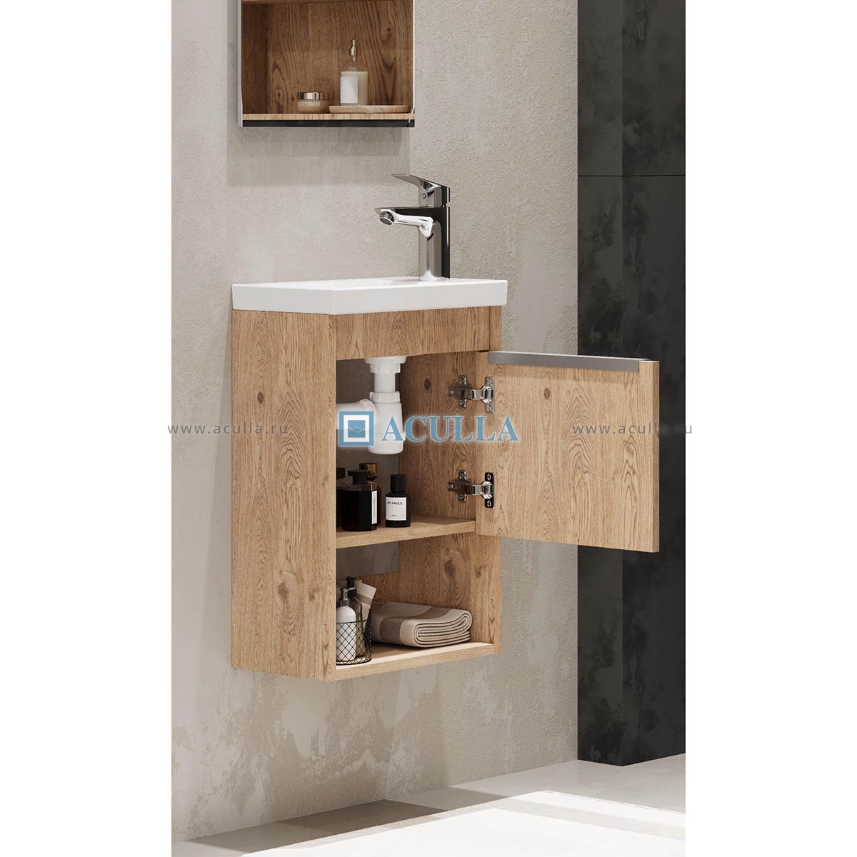 • Каждая тумба в этой коллекции создана с вниманием к деталям и стремлением к гармонии, что делает их не только практичными, но и эстетически привлекательными • Элегантные линии и современный дизайн подчеркивают утонченность интерьера, а использование влагостойкой ЛДСП гарантирует долговечность и простоту в уходе • Удобная ручка добавляет нотку изысканности, а открытая ниша предоставляет возможность организовать пространство так, как вам удобно — будь то размещение любимых аксессуаров или необходимых принадлежностей • Корпус и фасад выполнены из влагостокой ЛДСП в белой матовой покраске полиэфирной краской ультрафиолетового отверждения • Ручка в данной коллекции в трендовом цвете gun metal (вороненый металл) • Изготовленная из алюминия, она не только привлекает внимание своим эстетичным дизайном, но и имеет надежный и удобный хват • Тумбы коллекции Хоуп за счет своих цветовых решений в белом, древесном и светло-зеленом исполнении идеально впишутся в любой стиль ванной комнаты, от минимализма до классики, создавая атмосферу уюта и комфорта • Они не только помогут поддерживать порядок, но и станут ярким акцентом вашего интерьера • Регулируемые петли с доводчиком позволят использовать весь функционал тумбы бесшумно и с комфортом, а открытая ниша дает возможность убирать туда необходимы принадлежности, чтобы они всегда были под рукой • Высота полезного пространства - 160 мм • Цвет тумбы: орех • Тумба комплектуется умывальником Santek Миранда 40 см. Тумба с умывальником Акватон Хоуп 40 1A2871K0HP6C0 40 смКод товара: 1094001005