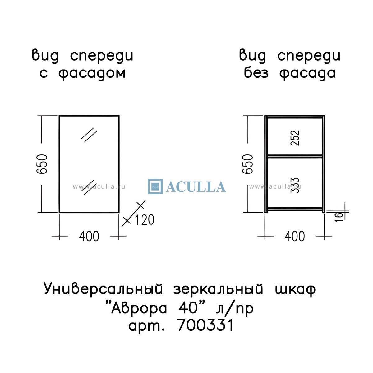 • Он прекрасно сочетается с любыми другими мебельными предметами и придает вашей ванной комнате более элегантный и уютный вид • Дверь зеркального шкафа Аврора можно перевешивать как на левую сторону, так и на правую • Покрытие корпуса: влагостойкое ЛДСП • Материал корпуса: влагостойкое ЛДСП • Размеры: 40х12х65 см • Петли плавного закрывания • Полочка ЛДСП – 1 шт • Подвесы. Шкаф зеркальный Санта Аврора 700331 40 смКод товара: 1087000270
