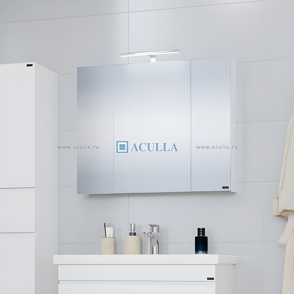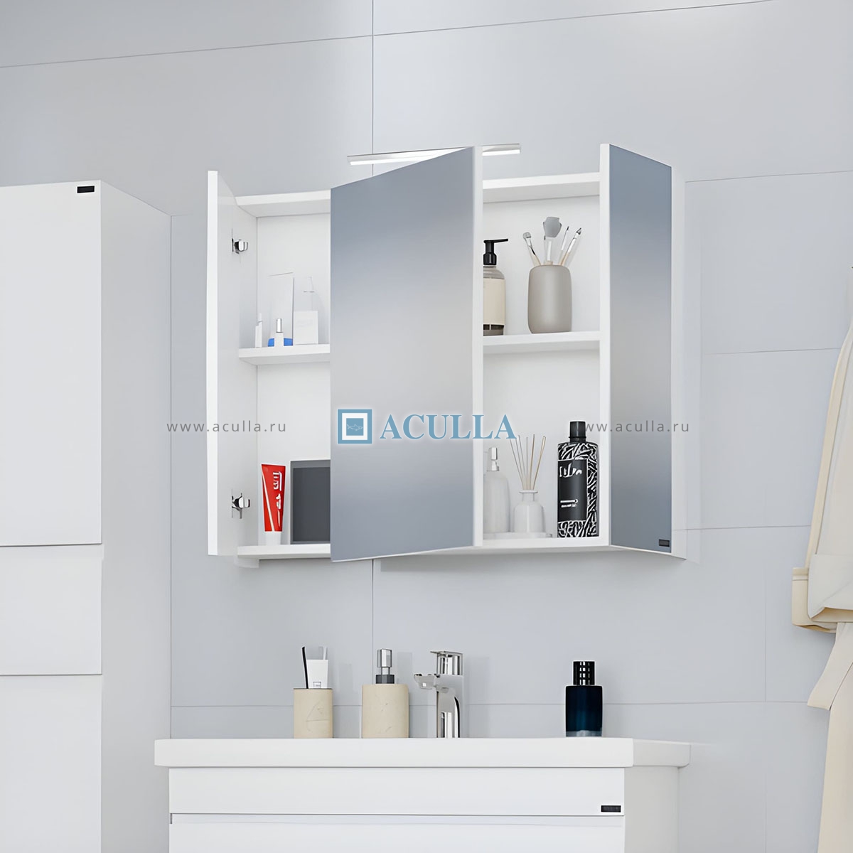 • Зеркальный шкаф для ванной комнаты Санта Аврора 80 см – это идеальное решение для тех, кто ищет стильный и удобный элемент мебели для своей ванной комнаты