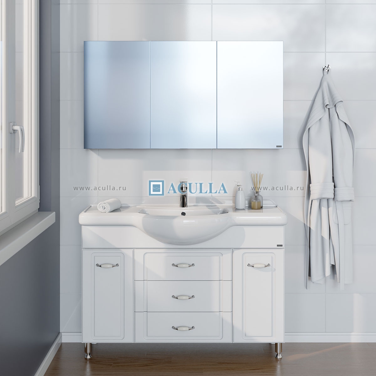 • Большой зеркальный шкаф для ванной комнаты Санта Аврора 120 см – это отличный вариант для тех, кто ищет стильный и удобный элемент мебели для своей ванной комнаты