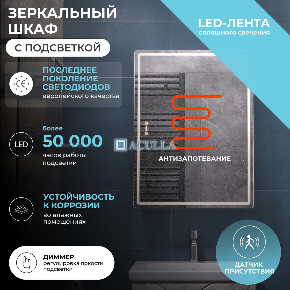 • Покрытие корпуса: матовое • Материал фасада: влагостойкое зеркальное полотно, ABS-пластик • Механизм доводчика: да • Размеры зеркального шкафа: 59.7х17х79 см • Петли с механизмом доводчика • 2 стеклянных полочки • Светодиодная подсветка по периметру • Датчик присутствия • Сенсорное включение • Функция антизапотевания, диммер. Шкаф зеркальный Vigo Geometry Step 600 60 смКод товара: 1088000573