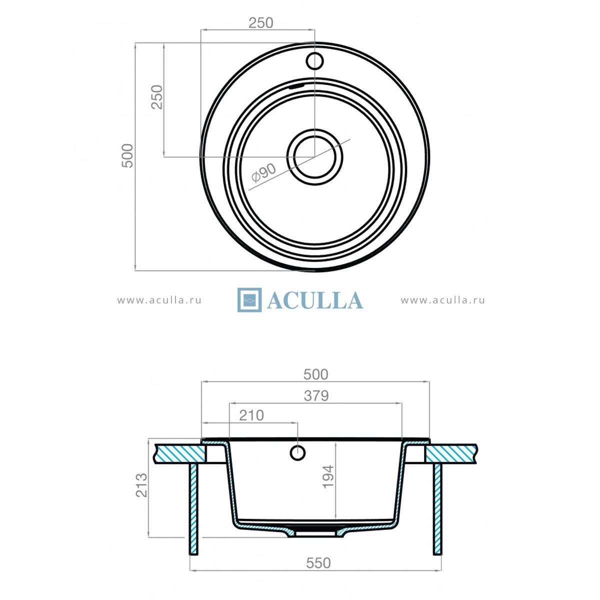 • Классическая кухонная мойка Акватон Шелли изготовлена из литого мрамора круглой формы с едва заметным бортиком, защищающим от разлива воды