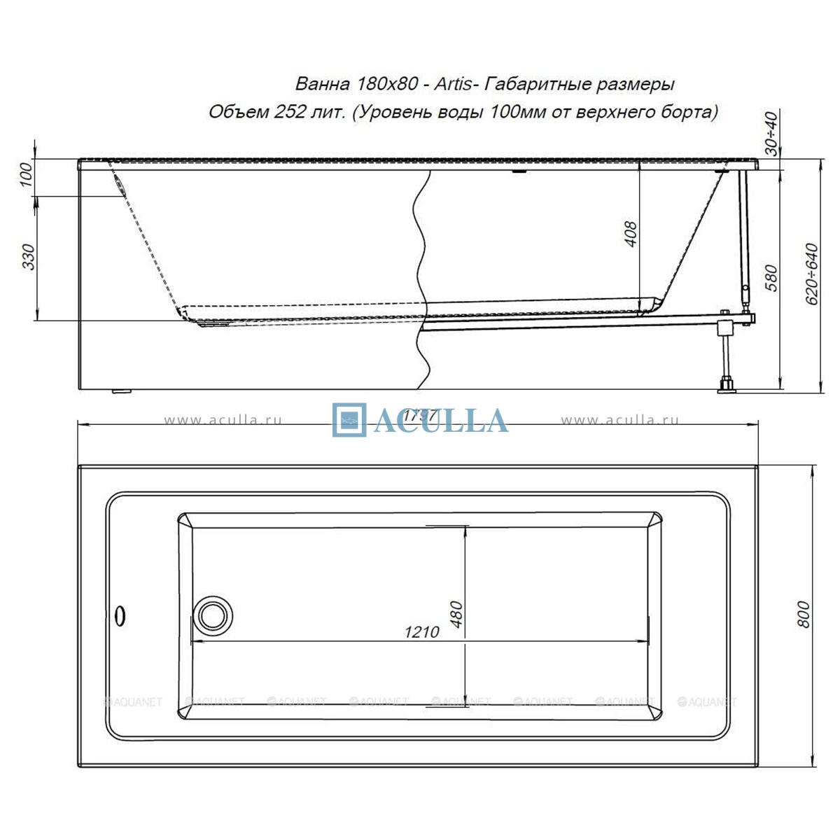 • Акриловая ванна Aquanet Artis 180x80 — это классическая прямоугольная модель
