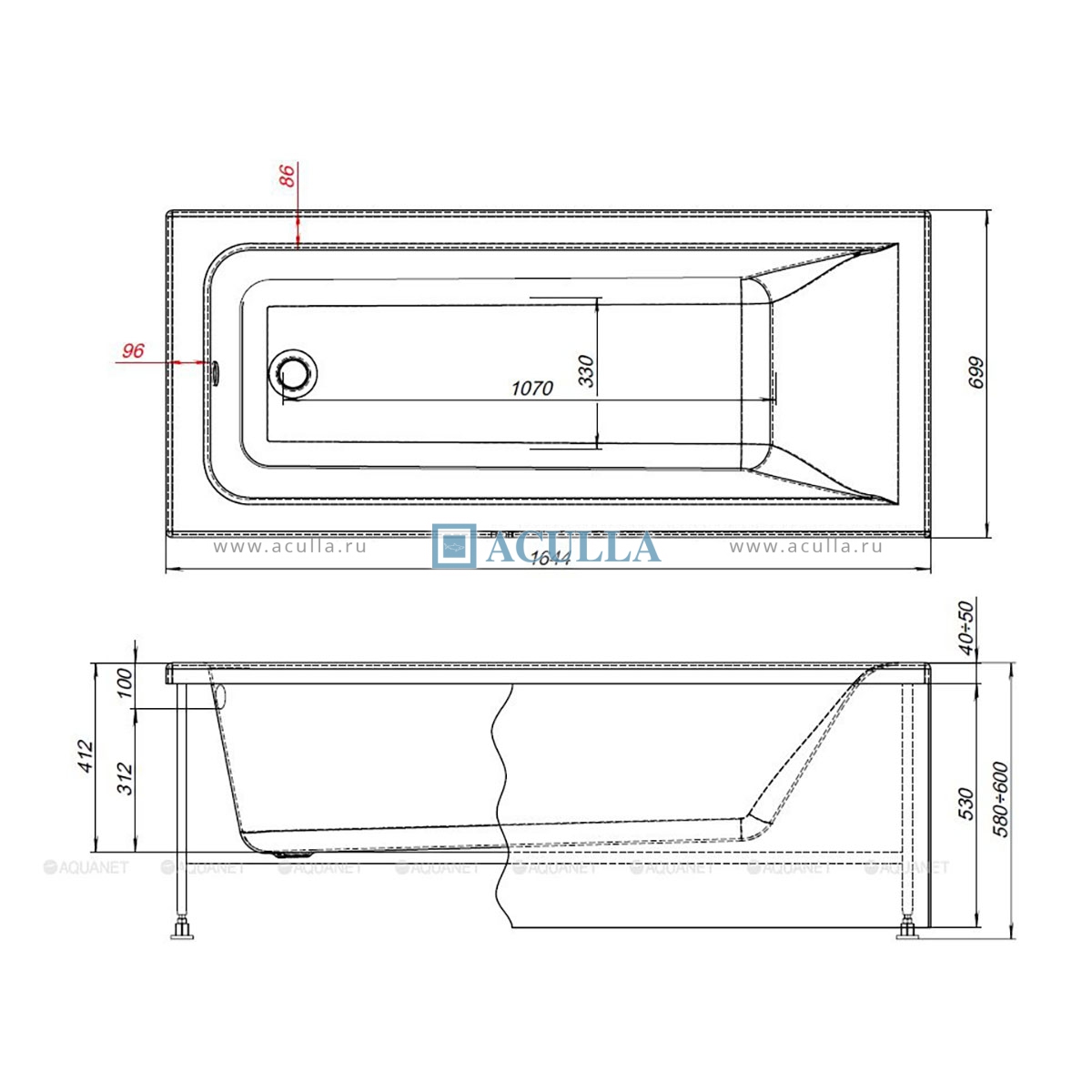 • Современная прямоугольная ванна Aquanet Aura 165х70 см — это ванна, созданная для ежедневного комфорта и долговечной службы
