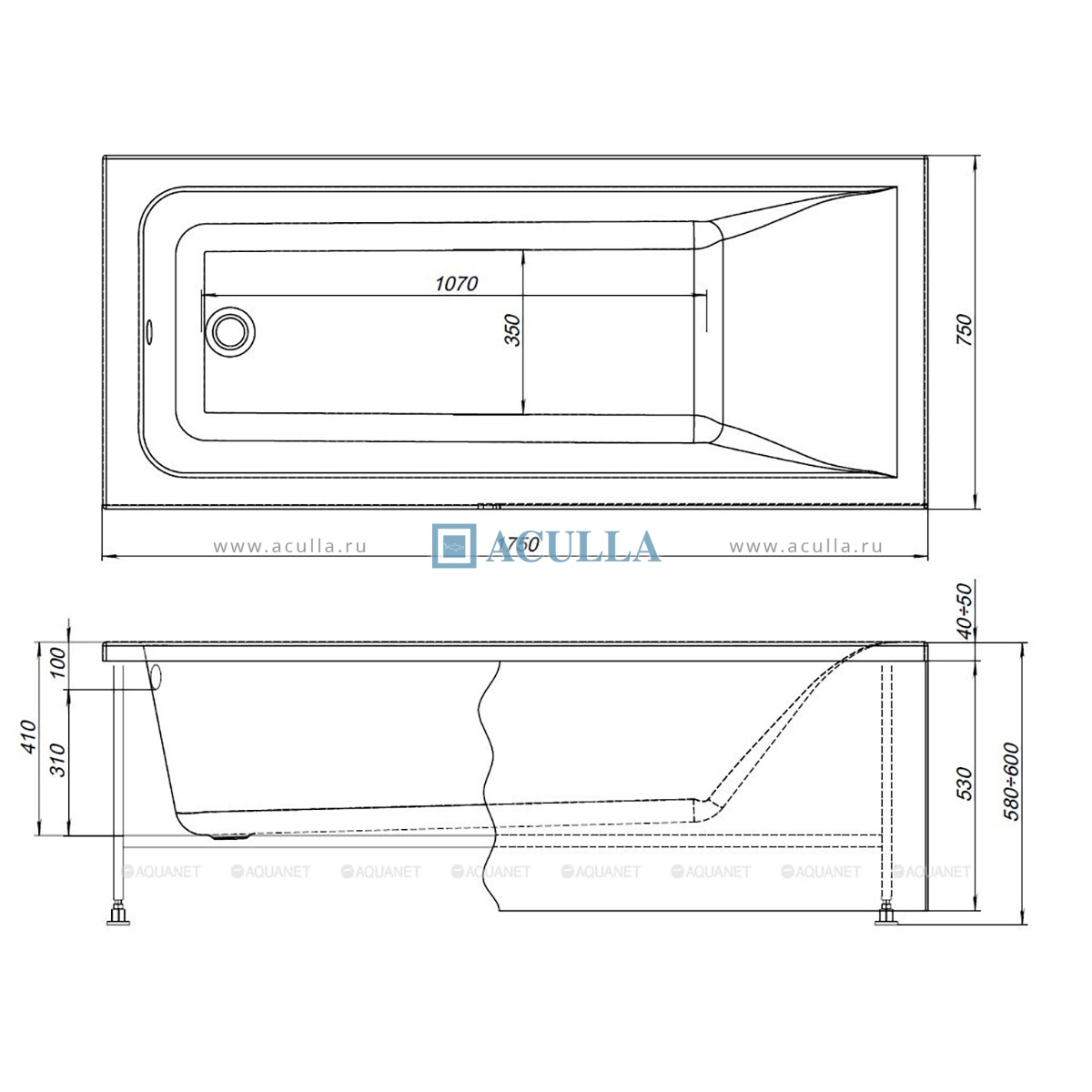 • Современная прямоугольная ванна Aquanet Aura 175х75 см — это ванна, созданная для ежедневного комфорта и долговечной службы