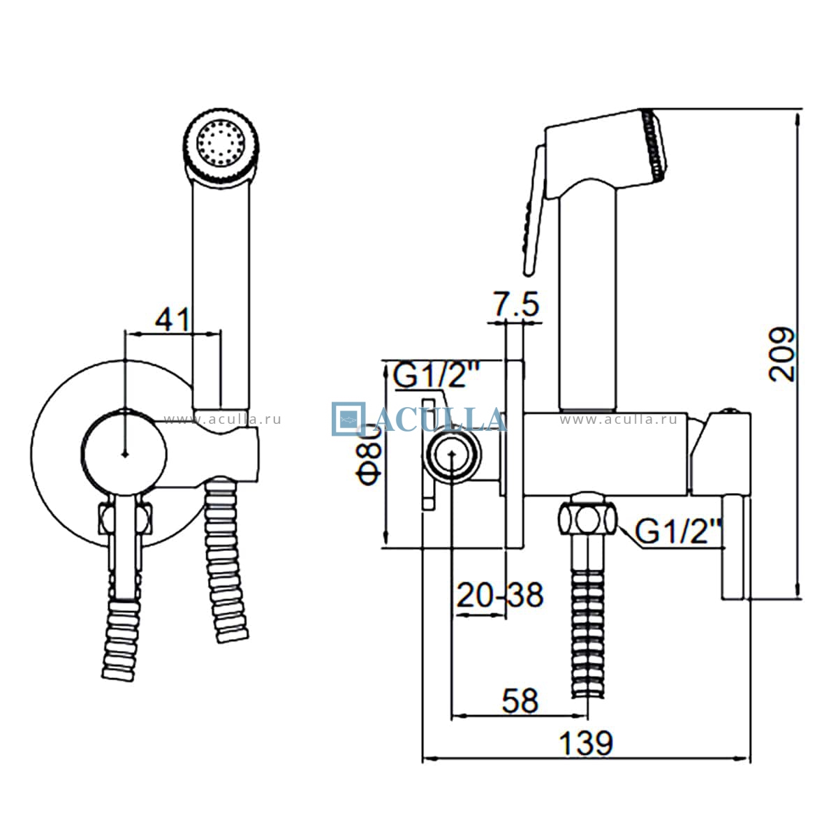 • Гигиенический душ Ledeme выполнен в цвете "оружейная сталь"